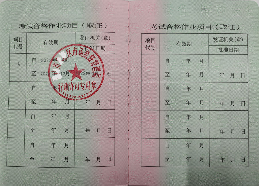 特種安全設(shè)備管理A,(電梯管理,鍋爐壓力容器管道管理,起重機械管理,場(廠)內(nèi)專用機動車輛管理,)起重機指揮Q1,起重司機(限門座式起重機)Q2,起重司機(限橋式起重機)Q2,起重司機(限門式起重機)Q2,起重司機(限纜索式起重機)Q2,起重司機(限塔式起重機)Q2,起重司機(限流動式起重機)Q2,起重司機(限升降機)Q2,叉車司機N1,觀光和觀光列出司機N2,電梯維修T,鍋爐壓力容器壓力管道管理,電梯管理,起重機械管理,場(廠)內(nèi)專用機動車輛管理,工業(yè)鍋爐司爐,電站鍋爐司爐,鍋爐水處理,快開門式壓力容器操作,移動式壓力容器充裝,氣瓶充裝,金屬焊接操作(壓力焊PE焊),非金屬焊接操作(壓力容器焊),食品檢驗員,化學(xué)檢驗員,農(nóng)產(chǎn)品檢驗員(4年一審,需要到期前3個月進行)