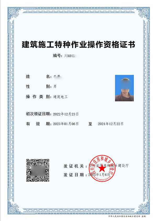 《建筑施工特種作業操作資格證書》